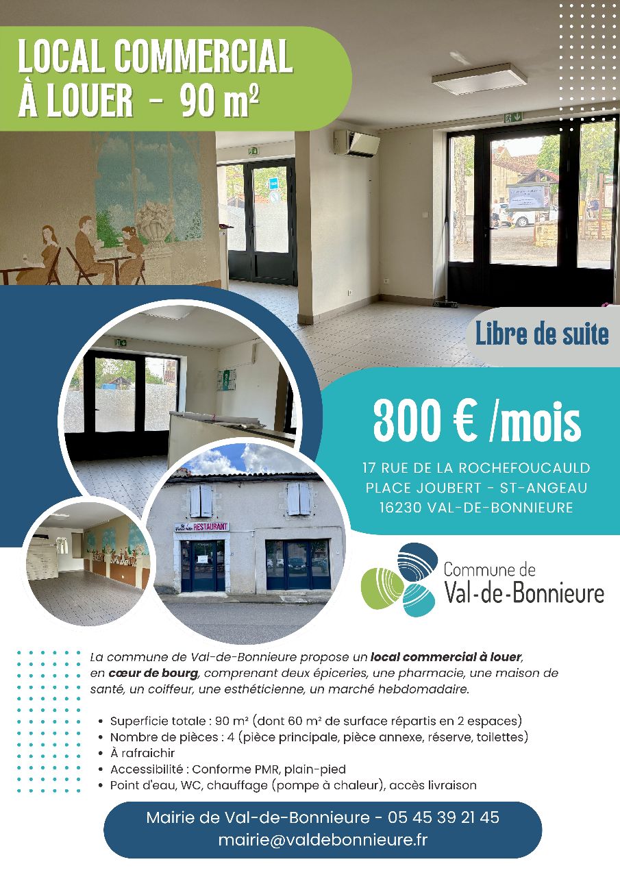 La commune de Val-de-Bonnieure propose un local commercial à louer,